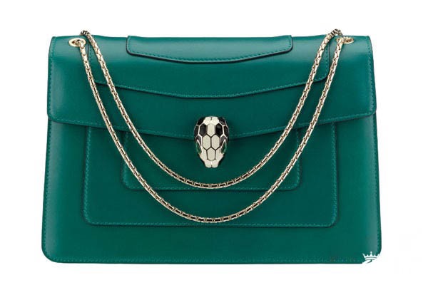 上图为宝格丽女包 Serpenti Forever系列祖母绿色小牛皮单肩包35362
