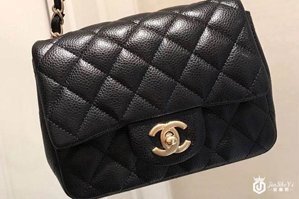 上图为香奈儿CF黑色方胖子斜挎单肩包黑金牛皮款