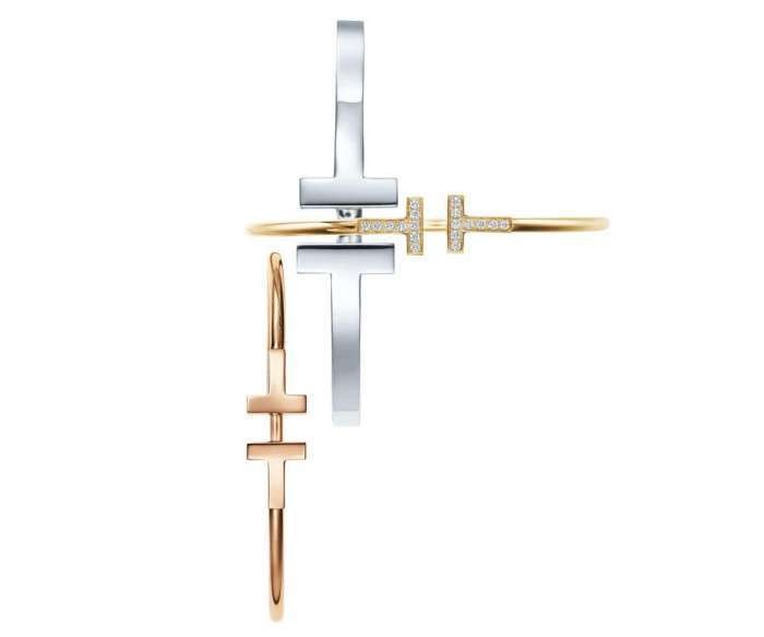 Tiffany T珠宝系列包括了宽形扣式开口手镯、细款手镯、T字形链结式手链、不同长度的项链和吊坠、风格自信的戒指和耳环。部分作品还采用了暖白色和亮黑色陶瓷。一些钻石款式珠宝的设计灵感来自于1920年代的蒂芙尼古董珍藏草图。 “典藏手稿中展示的钻石以十分简洁精致的方式镶嵌,极具时代风格,Tiffany T的设计精髓便由此而来。”