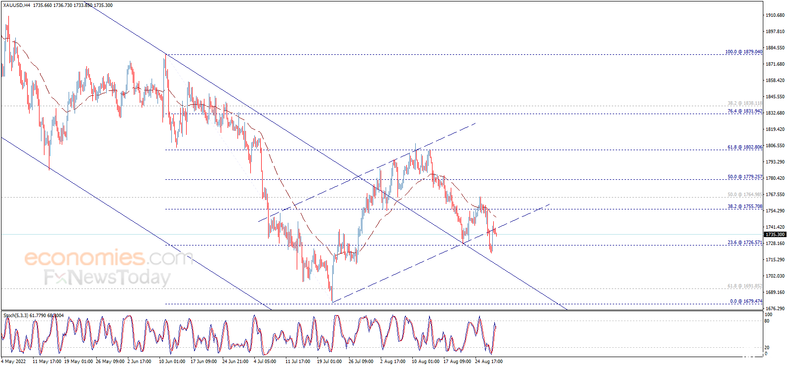 预计今日金价交投将位于支撑位1715.00美元/盎司以及阻力位1750.00美元/盎司之间。