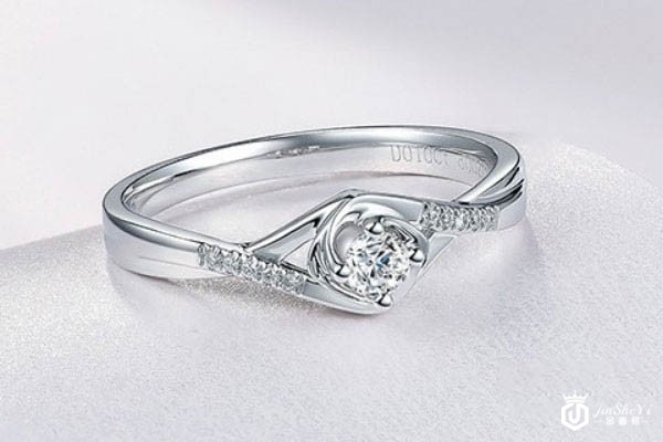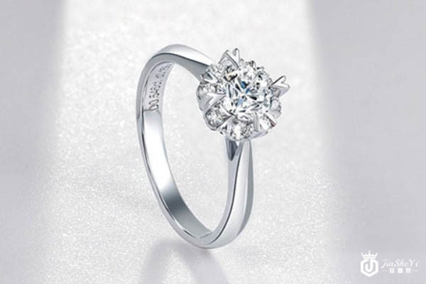 上图为周六福18K金钻石戒指爪镶钻戒