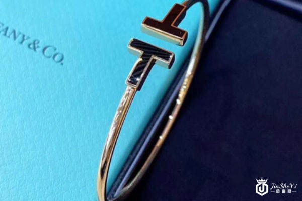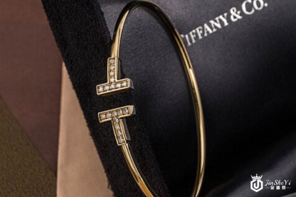 上图为蒂芙尼双T18k黄金镶钻手镯实拍