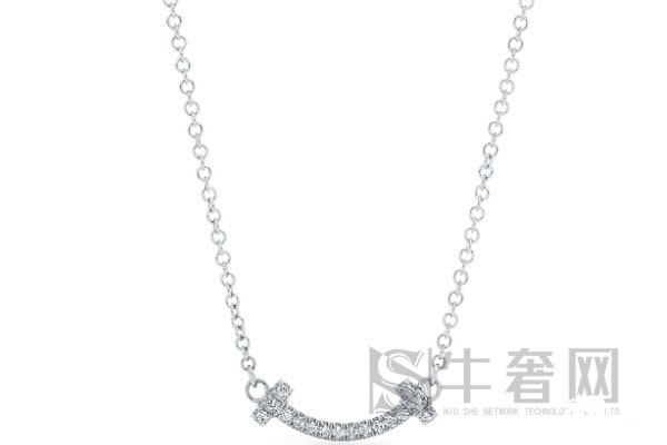 上图为蒂芙尼的18k白金mini微笑钻石项链