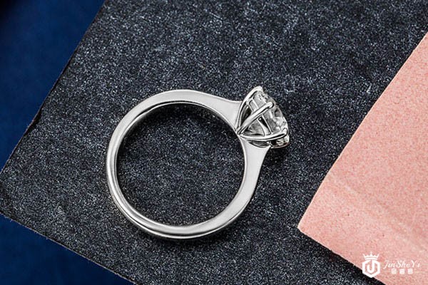 上图为周大福1克拉钻戒经典白金女款戒指侧边外观展示