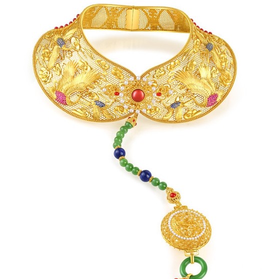 这种皇家文化黄金采用宫廷黄金制作工艺,采用镂胎,锤击,花丝,雕刻,镶嵌,金修等技术,是一种已经遗传了数千年的黄金生产工艺。与传统黄金首饰的机械化生产不同,它是手工制作,工艺复杂,要求严格。 成品的时间消耗通常是市场上普通黄金产品的十倍以上。