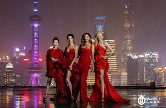 (左起) 欧米茄名人大使刘诗诗、亚历山大·安布罗休 (Alessandra Ambrosio)、辛迪·克劳馥 (Cindy Crawford) 及妮可·基德曼 (Nicole Kidman) 共同亮相上海