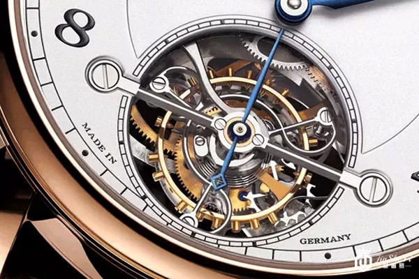 1815 TOURBILLON的表面和机芯一面首款陀飞轮腕表TOURBILLON “Pour le Mérite”是1994年推出的首个系列的表款之一。此表巧妙运用杠杆原理,并首度装配芝麻链传动系统,以抵消主发条盒扭力持续下降对走时精准度的影响。这进一步提升了腕表的速率稳定性和精确度。此表限量生产200枚,是品牌在拍卖市场上非常成功的作品之一。如今,保存完好的原型腕表备受收藏家追捧,其价格更可达原来的四至五倍。后来,芝麻链传动系统亦应用于另外两个陀飞轮表款。其中,TOURBOGRAPH “Pour le Mérite”同时装配了追针计时码表。在2011年登场的RICHARD LANGE TOURBILLON “Pour le Mérite”则配有非凡的整时器表盘布局和巧妙的旋转表盘。2008年,朗格推出两款新作,其中之一是CABARET TOURBILLON。这是品牌首款也是迄今唯一一款长方形陀飞轮腕表,更是首个配备专利停秒装置的表款。因为陀飞轮本身无法停止下来, 要准确设定配备陀飞轮的腕表一直是道无法解决的难题。在陀飞轮问世200年后,此项朗格发明终于解决了这个长久以来的问题,成功直接制动旋转陀飞轮框架内的摆轮。从此,所有表厂自制的新型陀飞轮机芯均配备停秒装置。