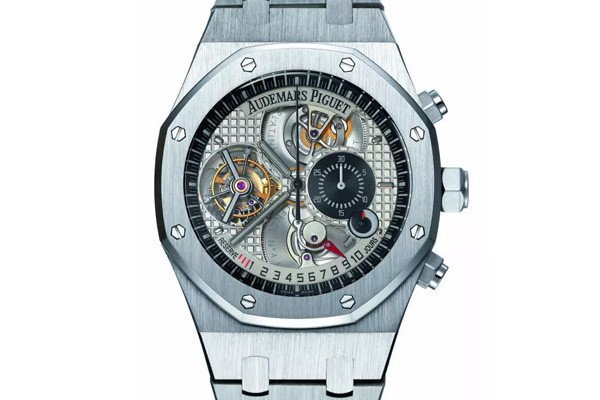 ' Excellence”,被表迷们形象地称为“八大天王”。“八大天王”系列是复杂功能制表领域非常具标志性的里程碑,也是对两个多世纪钟表工业和工艺的概括总结,自推出就成为全球钟表藏家梦寐以求、翘首以待的终极杰作。1999年推出的第一号属于 Jules Audemars 系列,具备陀飞轮、三问、追针计时功能;