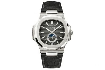 基本信息编号:5726A-001品牌:百达翡丽系列:运动系列机芯类型:自动机械别名:鹦鹉螺价格提供准确价格、价格:¥ 3538002012-06欧元:美元:$ 403002011-07港元:HK$ 2954002016-04注:以上为官方媒体公价(仅参考),请咨询当地专卖店,详情>>机芯机芯型号:Cal.324 S QA LU 24 H出产厂商:百达翡丽机芯类型:自动机械机芯直径:32.6毫米机芯厚度:5.78毫米摆轮:Gyromax,带调节砝码的摆轮振频:28800每小时振荡次数游丝:新游丝(硅材质)宝石数:34个零件数:347个动力储备:45小时外观表径:40.5毫米表壳厚度:表壳材质:不锈钢表盘颜色:深灰色表盘形状:圆形表盘材质:覆荧光涂层金质立体时标表镜材质:表冠材质:不锈钢表带颜色:黑色表带材质:鳄鱼皮表扣类型:折叠扣表扣材质:不锈钢背透:背透重量:防水深度:120米功能日期显示星期显示年历显示月相金奢易网回收中心