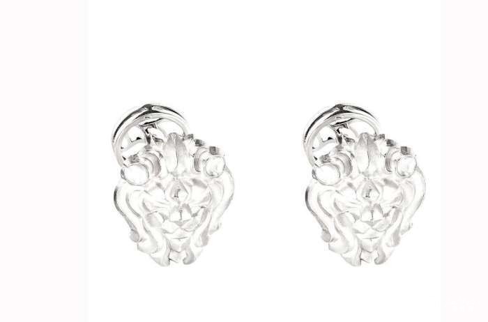“Lion Astral”白K金镶钻珠宝作品流丽典雅,壮丽闪亮如漫天星辉的夜空。长项链以两排钻石组成,缀以可拆分的狮子头像,并以两个不对称的月牙紧扣。款式还配有狮头吊坠耳环、两只手镯及戒指。