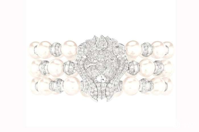 “Lion Impérial”白金镶钻和珍珠系列代表了香奈儿女士的经典创作,浑圆光滑的珍珠柔美亮丽,光彩夺目,与闪烁耀眼的钻石互相辉映,配衬狮子图案,流露简约不朽的优雅格调