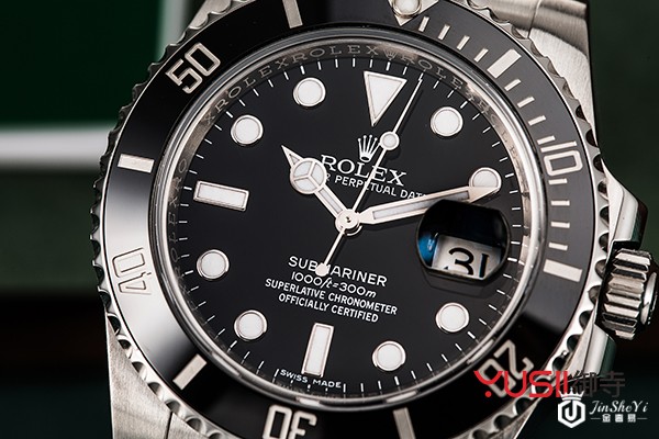 从官网查询的资料来看,潜航者型于1953年面世,是世界上第一只防水深达100米(330英尺)的腕表。这是继1926年推出全球首只防水蚝式腕表后,防水性能研究上的第二次重大突破。潜航者型堪为制表史上的转捩点,为潜水腕表奠定标准。它的设计精髓在于,完全因潜水员的实际需要而设计。新一代潜航者型腕表设有独特的夜光钟点标记,表盘的Chromalight夜光显示技术,使肉眼能够在漆黑的环境中依旧清晰读时。它的特色在于能够适应水下环境,确保防水深达300米(1,000)英尺,给予高精准机芯最佳防护,具有防水、防尘、抗压等特点。此外,潜航者型的单向旋转外圈设有坑纹,方便设定潜水时间,更加安全可靠。
