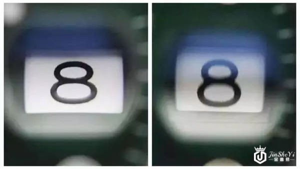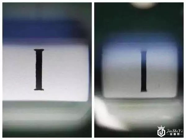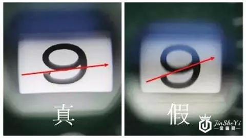 最明显的就是数学“6”和“9”,我们顺着笔画画一条线,大家可以看到正品的直线可以和弧度的地方刚好相切而过,但是假表就不行了是直接穿过去的。
