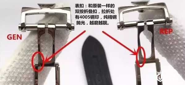 表扣对比:表扣为折叠扣,表权扣内侧均有4005钢印,表扣为精钢表扣,经过抛光处理。正品的表扣不仅选用的是优质的材质,而且做工也比较精细,表面还采用了哑光的技术,所以看起来高档但是又不晃眼睛,边角的处理也十分的润滑。仿冒品的表扣虽然表面上看几乎分辨不出真伪,但是在对比中我们会发现,两个凹槽的地方要比正品的深一些,所以显得中间压口处比较细,而且过度的也不是很自然。江诗丹顿有“贵族艺术品”的美誉,号称世界第一名表,价值不菲.从几十万到几百万不等,最贵的上千多万。为了避免买到假货,大家一定要学习江诗丹顿怎么辨别真假。希望金奢易网为您带来的江诗丹顿腕表鉴别真假的方法对您有帮助。当然,江诗丹顿鉴别方法还有其他的,只要大家多看,多查,多分析,就能够发现明显的差别,鉴别起来也不困难。