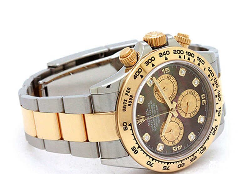 时标镶钻的半金116503G也是因为2020年调整价格的关系,这种时标镶钻的半金款目前有黑面和香槟金面两种选择,国内表迷比较爱的是黑面,而且时标镶钻似乎对当地表迷更有吸引力(也或许是更有价值),因此水货店的行情高出原厂定价的幅度要比116503更多。
