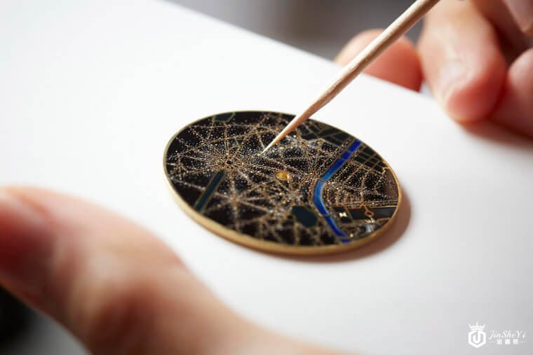 ▲工艺师运用半透明到深色之间的珐琅釉彩其明暗对比展现非夜景氛围。