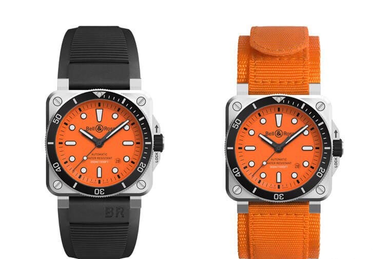 正是基于上述的原因,柏莱士才特别选用亮眼的橘色制作面盘,而且橘色本来也和品牌的潜水表特别有渊源,除了先前不锈钢黑面版本就曾使用橘色点缀时针,再往前追溯到柏莱士以往推出的BR02圆壳潜水表,也同样可见用橘色点缀面盘细节,这次BR03-92 Diver使用橘色面盘可以说是将这样的设计理念推向极致。