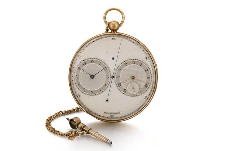 怀表正面看起来拥有两枚小表盘,它的机芯其实设置了两套擒纵系统,以功能性而言这款是三只待拍卖的手表中最简单的,但是论稀有性它却是最高的,据说宝玑大师只制作不过过3款,也因此这款表的预估价反而是三只怀表中最高的,介于400,000~600,000英镑。