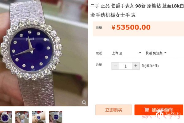 伯爵18k白金镶钻蓝面女士手表在市场上受众度小,因为女表类型和品牌价格的缘故,销量并不可观。但是它的98新二手表在大型连锁企业线上平台的售价如上图所示,在53500元人民币,即回收价格在50000元人民币左右浮动。综合来看,这款二手98新伯爵女表在大型连锁回收企业的价格在原价的六折左右,算得上非常不错,因为它市场行情冷淡,所以一般的回收实体店只会给出四折到五折徘徊的价格。