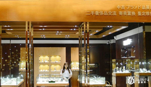 上图为二手浪琴手表回收店内部柜台和工作人员展示
