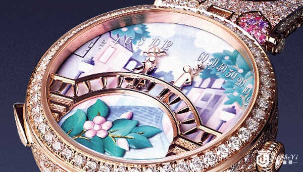 二手梵克雅宝诗意复杂功能系列VCARO8U000珐琅表盘、玫瑰金雕刻桥梁展示图