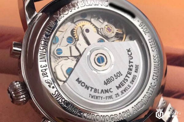 上图为万宝龙明星系列08452三眼计时手表背面展示