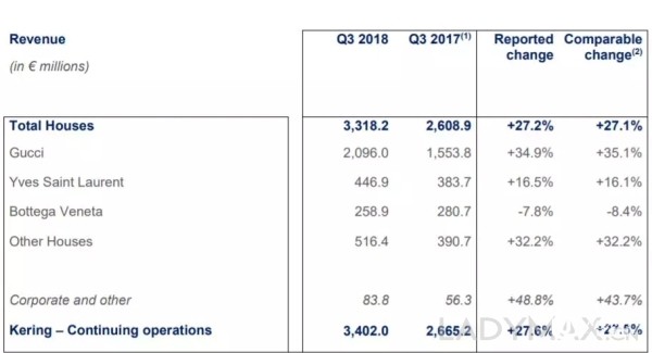 图为开云集团第三季度主要业绩数据 (图片来源:LADYMAX)