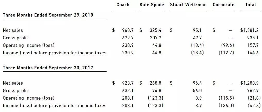 10月30日,Coach母公司Tapestry发布2019第一财季报告,业绩表现超过市场预期。在截至9月29日的三个月内,集团销售额同比增长7.2%至13.8亿美元,同店销售增长4%,盈利1.22亿美元,实现扭亏为盈。