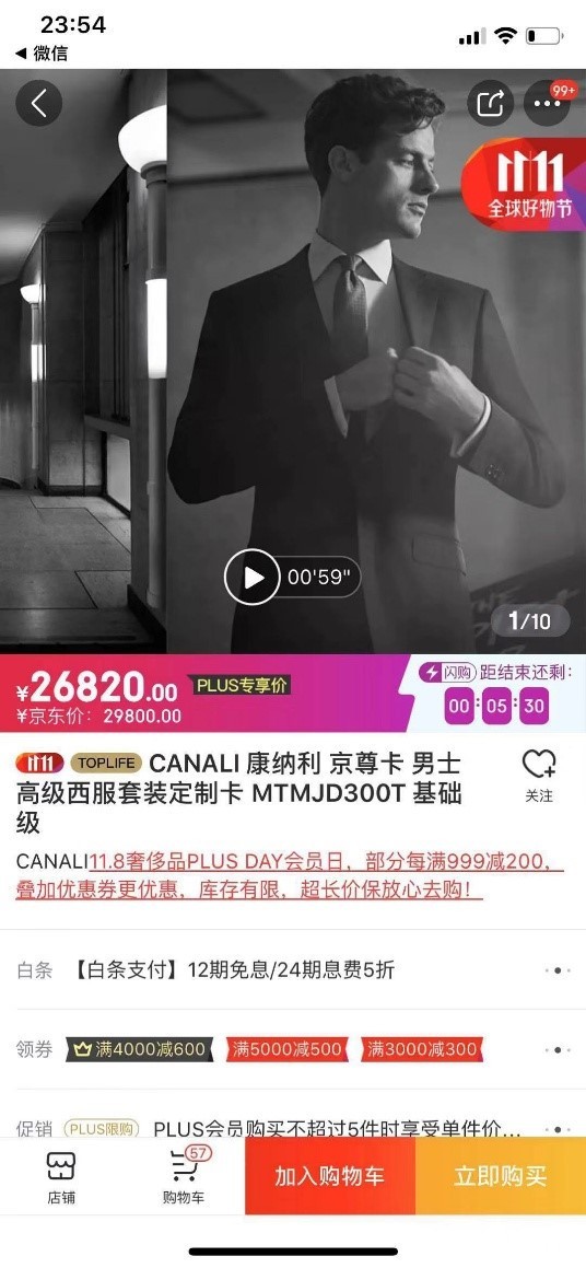 在两个半小时的直播过程中,除了高管亲自上阵带流量,专业服装搭配师,时尚达人、以及国际男模从不同角度诠释了商务,日常,运动等不同风格的奢品搭配。并对于奢侈品牌的解读,以及高品质面料,复杂精进的多种工艺等进行了深度剖析,让大家在一饱眼福的同时,也对这些大牌背后的历史,产品的独到之处独有了更深度的了解。直播当天,正值京东Plus Day。众多奢品,腕表,珠宝大牌力度空前,许多消费者在观看时就将直播中推荐的产品加入购物车,甚至直接下单。整个直播变成了一场高品质的消费盛宴。