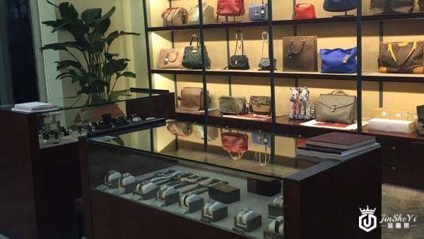 上图为奢侈品回收店的二手手表和包包柜台展示