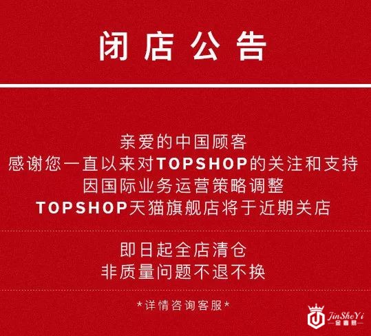 Topshop宣布关闭天猫旗舰店