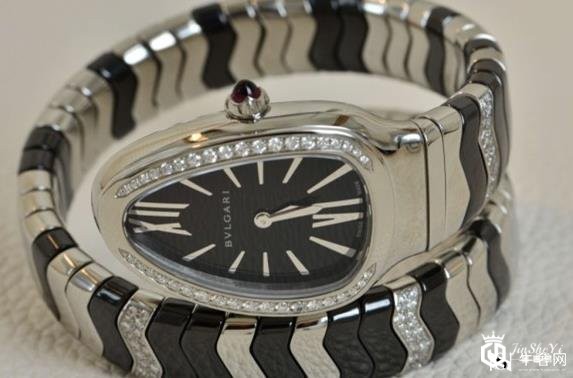 宝格丽蛇形腕表,宝格丽的世界里,蛇的主题一直是自1940年以来最有特色的品牌标志之一,它的蛇手表已经成为一面旗帜工作。自从20世纪40年代BVLGARI的第一蛇形腕表的诞生,BVLGARI的宝格丽设计师的才华就不断点燃精彩的火花,并且已经出现了成品油的不断释放。 BVLGARI宝格丽腕表蛇已经成为其品牌的一个里程碑式的作品,并由此拉开在高级珠宝腕表领域的新篇章。今天,世界著名的蛇形传奇设计不断攀升完美的巅峰之作,巧妙地解释格丽品牌的创新精神。该系列的Serpenti的非凡而独特的手表表带沿着弯曲的抛光表壳娓娓道来,就像一个精神蛇缠他的手腕。 18克拉玫瑰金表壳,镶嵌圆形明亮式切割钻石,黑欧泊表盘搭配扭索直肋处理,双螺旋18克拉玫瑰金表带。这款腕表展示宝格丽的两大特色,蛇形标志和Tubogas手镯。全新的Serpenti系列腕表配备了瑞士石英机芯定制宝格丽。
