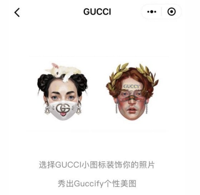 据了解,“自我宣颜功能”鼓励用户上传自拍照,通过添加Gucci图腾生成动态表情,并可以分享至好友。此外,消费者还可以通过Gucci小程序选购各种不同寓意的礼品卡。