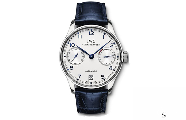 大家耳熟能详的万国葡七,拥有7天的动力储备显示功能,公价9万8。手表直径42.3毫米,型号IW500107,采用精钢表壳打造,蓝钢指针搭配罗马数字时标,手表内部搭载的为万国自产的51011自动上链机芯,上满链可提供168小时的动力储备,超长动力,即使周末休息不常戴表,手表也依然在走,不用每周一都要重新调试手表。