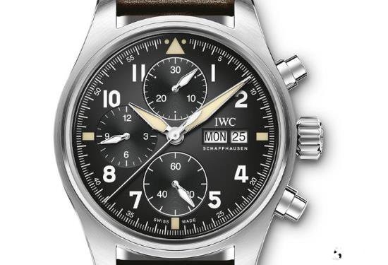 万国IWC377701手表的霸气外漏揭示了老鹰撞击天空的骄傲。该圆形表壳与黑色表盘由不锈钢和对比。与早期型号相比,飞行员计时腕表的尺寸仅略微增加一毫米。黑色表盘采用了白色的时间刻度和指针,和计时功能一目了然。坚固耐用的手还添加了一个男性化的触摸到这款手表。它不仅具有基本的时间显示和日期显示功能,而且还具有优异的定时功能。有在壳体的右侧两个定时的按钮。按下右上角的按钮开始计时,然后按下按钮停止计时。右下侧是复位定时的按钮。这样的设计操作易于掌握。