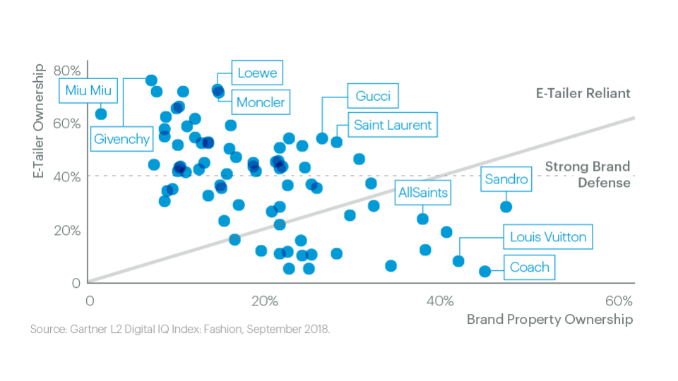 但是,Gartner L2的网络情报指数显示,随着零售合作伙伴变成了敌人,品牌面临着一场艰难的战斗。在线购物者仍然更喜欢零售商而没有动力去品牌网站购物,因为奢侈品牌和百货商店及零售商相比有很多落后的地方,如加急送货和退货,以及全天候客户服务等。随着合作伙伴成为竞争对手,如果奢侈品牌想要吸引消费者并提高电子商务收入,需要投资这些方面并在网络广告和品牌渠道上投入更多资金。