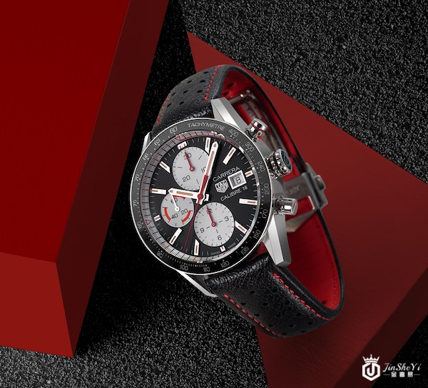 两款带有复古风格的全新卡莱拉系列Calibre16计时码表,表盘直径41毫米,黑色表款搭配黑色皮表带,蓝色表款搭配精钢表链。无论是红色点缀、整体配色、还是对比效果以及各个计时盘的位置都清晰呼应赛车运动。