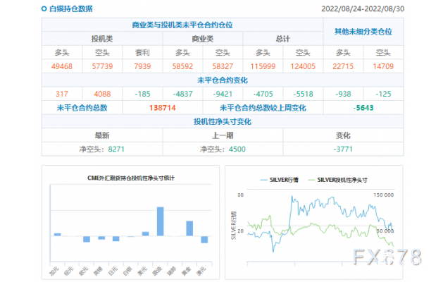 美国商品期货交易委员会(CFTC)数据显示,截至8月30日当周,COMEX黄金期货投机性净多头头寸减少9599手至20726手,创最近五周新低。COMEX白银期货投机性净空头头寸增加5425手至21059手,创逾三年新高。
