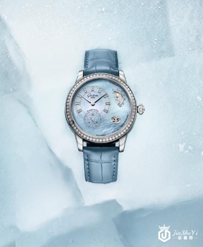 冬日暖阳下的冰封玉湖:光芒耀眼,神采夺目——偏心月相女士腕表的生动写照