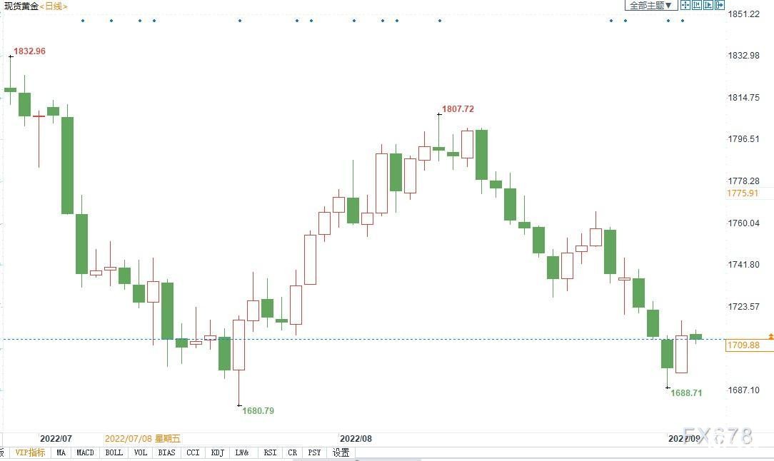 nload='javascript:if(this.width>500)this.width=500' align='center' hspace=10 vspace=10 rel='nofollow'/>现货黄金日线图 北京时间9月5日15:07,现货黄金报1709.95美元/盎司。