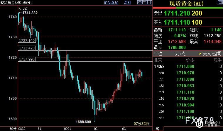 周一(9月5日),国际金价持稳,尽管美元指数再创2002年6月中旬以来新高至110.28,但由于美国8月就业报告显示失业率上升,暗示美联储可能放慢加息步伐,金价上个交易日创下一个月来最佳单日表现,短线继续看涨,上方目标看向1723美元。 北京时间14:53,现货黄金上浮0.01%至1711.86美元/盎司;COMEX期金主力合约上浮0.03%至1723.0美元/盎司;美元指数上涨0.35%至109.974。 8月4日以来最大单日涨幅的0.84%,因美国8月份工资增长温和且失业率升至3.7%,这表明劳动力市场开始放松。美联储定于本月20日和21日召开新一期政策会议。 联邦基金利率期货显示,美联储本月连续第三次75个基点加息的可能性约为57%。而在8月非农就业数据公布前,该数值一度高达75%。 City Index高级市场分析师Matt Simpson表示:“距离美联储会议只有两个多星期了,而且‘噤声期’迅速临近,美联储官员本周发表的任何言论都将受到交易员审视,因为他们有能力推动美联储的政策,任何言论若暗示75个基点加息都可能令金价承压。” 美国商品期货交易委员会(CFTC)上周五(9月2日)表示,在截至8月30日的一周内,投机者减持COMEX黄金期货净多头头寸9599手,至20726手。 日线上看,金价自1808美元开启下行III浪走势,下方支撑看向38.2%目标位1658美元。III浪是自2070美元开启的下行©浪的子浪。但小时图上看金价看涨,短线将升破1718美元,并进一步上摸1723美元和1727美元。