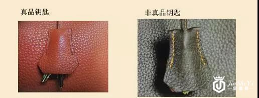正品Hermes钥匙包硬挺包裹性好,仿品则容易变形。正品钥匙刻字清晰,字体较细,锁孔光滑;仿品刻字粗糙且模糊,锁孔大却不光滑。