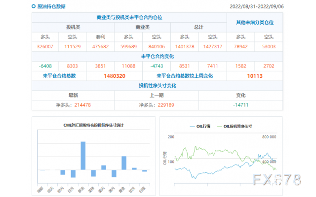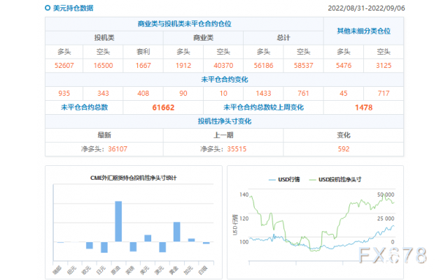 nload='javascript:if(this.width>500)this.width=500' align='center' hspace=10 vspace=10 rel='nofollow'/>(原油持仓数据) 据计算和美国商品期货交易委员会(CFTC)公布的数据,最近一周投机客持有的美元净多头押注增至8月初以来最高。截至9月6日当周,美元净多头头寸从之前一周的142.1亿美元增加至161.8亿美元。美元净多头头寸已经连续四周增加。芝加哥国际货币市场(International Moary Market)的美元仓位是根据日元、欧元、英镑、瑞郎、加元和澳元这六种主要货币的净仓位计算得出的。最近一周,日元净空头合约增加至58189手,为7月下旬以来最多。