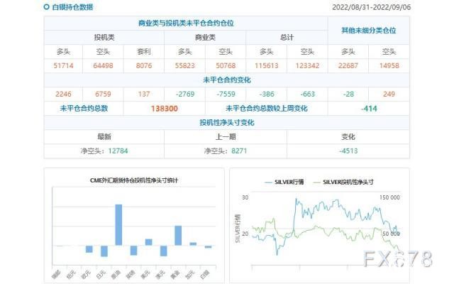 美国商品期货交易委员会(CFTC)数据显示,截至9月6日当周,COMEX黄金期货投机性净多头头寸减少19510手至1217手,创最近六周新低。COMEX白银期货投机性净空头头寸增加3573手至24632手,创最近逾三年新高。