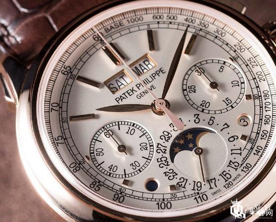 百达翡丽5270系列5270G白金腕表结合华丽与高贵,散发着晶莹的光泽。刻度盘通过合理的分区显示不同的功能。两个方形窗户上部两个细分显示星期和月份。两个小表盘中间对称是小秒和30分钟。月相和日期显示盘位于六点钟。百达翡丽擅长简化复杂的功能,并获得最直观的方式是最漂亮的外观。
