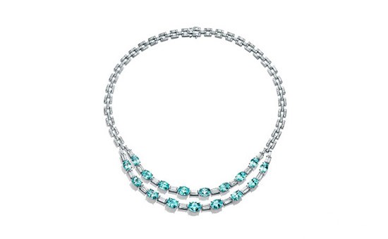 经典之作系列以彩钻、红宝石和南海珍珠为素材,打造经典而不失摩登的现代作品。经典之作系列中的此款项链镶嵌以总计36克拉的椭圆形蓝色碧玺及17克拉的正方形切割钻石,绽放出明亮的色彩,蒂芙尼用令人叹为观止的镶嵌工艺赋予其现代感,呈现超凡卓越的高级珠宝。