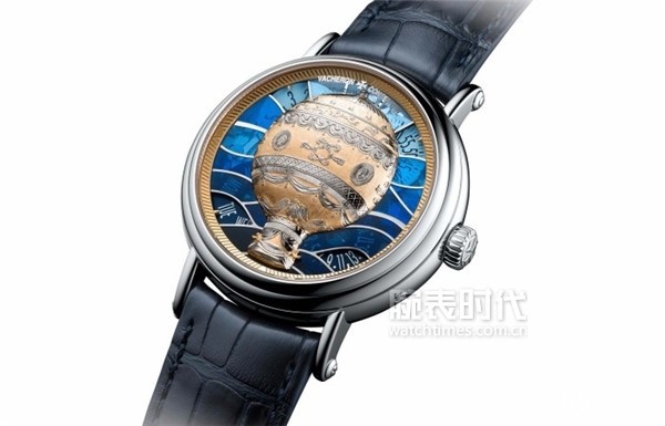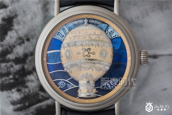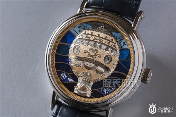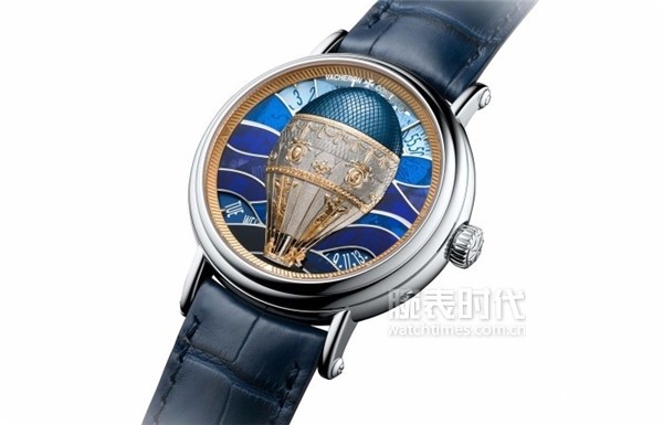 5.巴尼奥勒1785,数万名群众见证了此次飞行并致以雷鸣般的掌声。以优雅的白金和黄金制成的篮筐仿佛悬浮于蓝色镂空珐琅背景之上,气球上半部分采用电镀工艺为其着色。在此次飞行七年后,该热气球帆布则被制成了共和党志愿者的衣物。