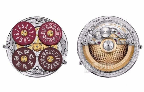 江诗丹顿艺术表款留给腕表时间显示功能的空间都比较狭小,这一系列的热气球表款也是如此,与生肖腕表的显示方式相似,在表盘的四个角落处分别具有小时、分钟、星期和日期的显示(2460 G4/1机芯)。而且在机芯数字显示盘上,被装饰了与表盘同色系的颜色,所以让这些显示盘完全融入到了表盘之中,所以看起来有点费劲。感觉这一设计还是很冒险的,时间的显示有种被模糊的感觉,腕表的艺术品属性被过分的放大。