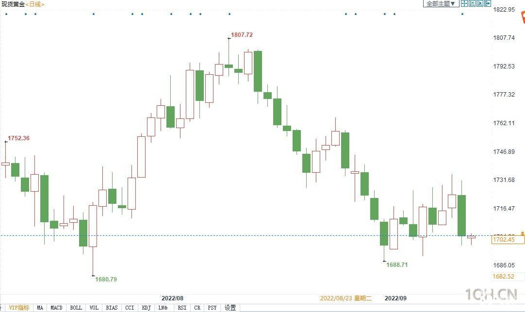 nload='javascript:if(this.width>500)this.width=500' align='center' hspace=10 vspace=10 rel='nofollow'/>(现货黄金日线图) 北京时间9月14日10:37,现货黄金报1702.29美元/盎司。